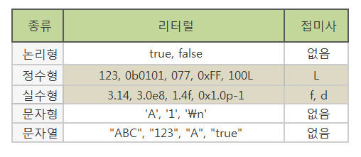 - 리터럴은 우리가 기존에 알고 있던 '상수'의 다른 이름일 뿐이다.