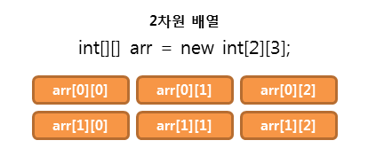- 선언 방법은 1차원 배열과 같다. 다만 괄호 [ ]가 하나 더 들어갈 뿐이다.